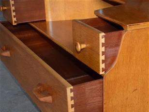 In very good original vintage condition and smooth running drawers and a good warm colour and soft aged patina